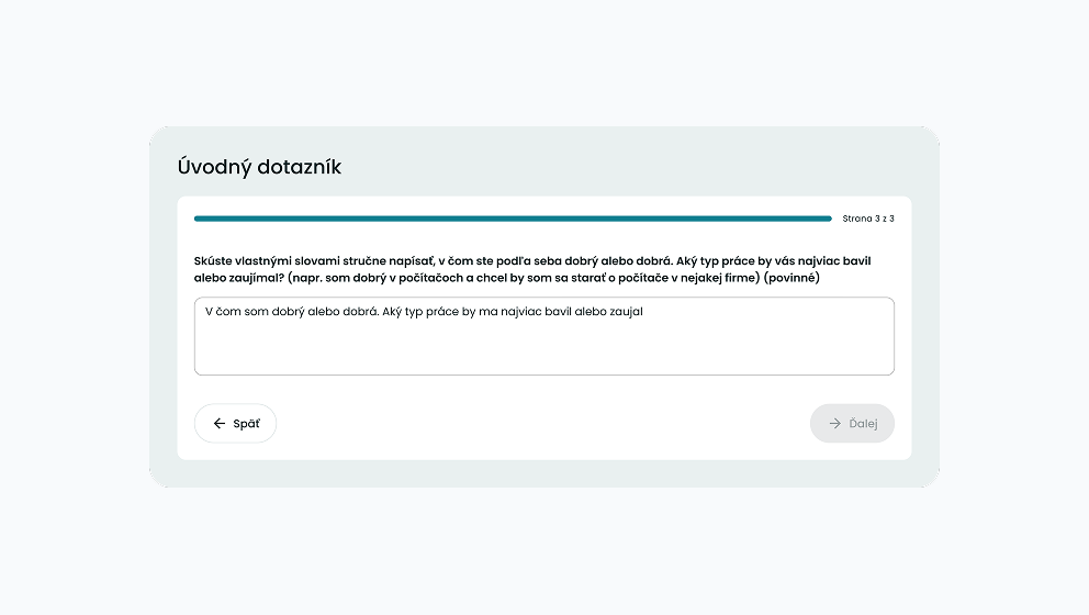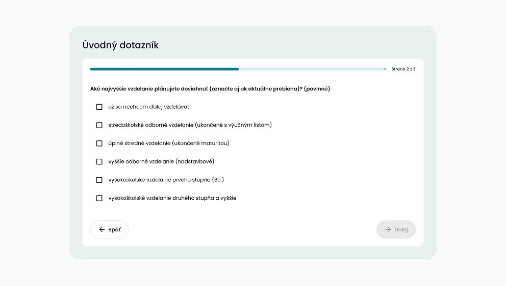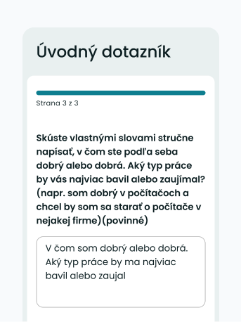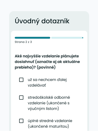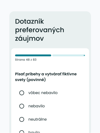 Tento dotazník nám pomôže lepšie pochopiť tvoje vzdelanie, v čom si dobrý alebo dobrá a aká práca by ťa najviac bavila.