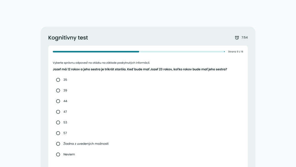 Trvanie vyplnenia testu: 16 minút